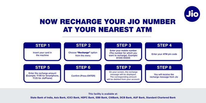 After a successful transaction, the machine will display a message confirming the recharge has been successful, and the corresponding amount will be debited from your account. Users will also get a confirmation message on their Jio mobile number.